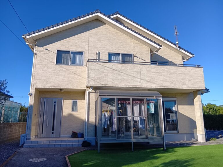 千葉県東庄町のN様邸にて、外壁塗装工事を行いました。「外壁の汚れが気になってきた」「軒天や窓枠の劣化が心配」とのご相談をいただきましたが、見た目の印象は大きく変えたくないというご希望もありました。今回は、雰囲気はそのままに、ワントーン明るい色で仕上げた事例です。 お客様か