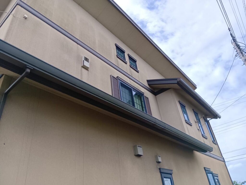 S様邸では、外壁の雰囲気を大きく変えずに印象を良くすることを意識しました。付帯部の色やベージュ部分の明るさを調整することで、全体が引き締まり、施工前とは違った表情を見せています。無機フッ素塗料と光触媒コーティングにより、耐久性と美観の両立も実現しました。